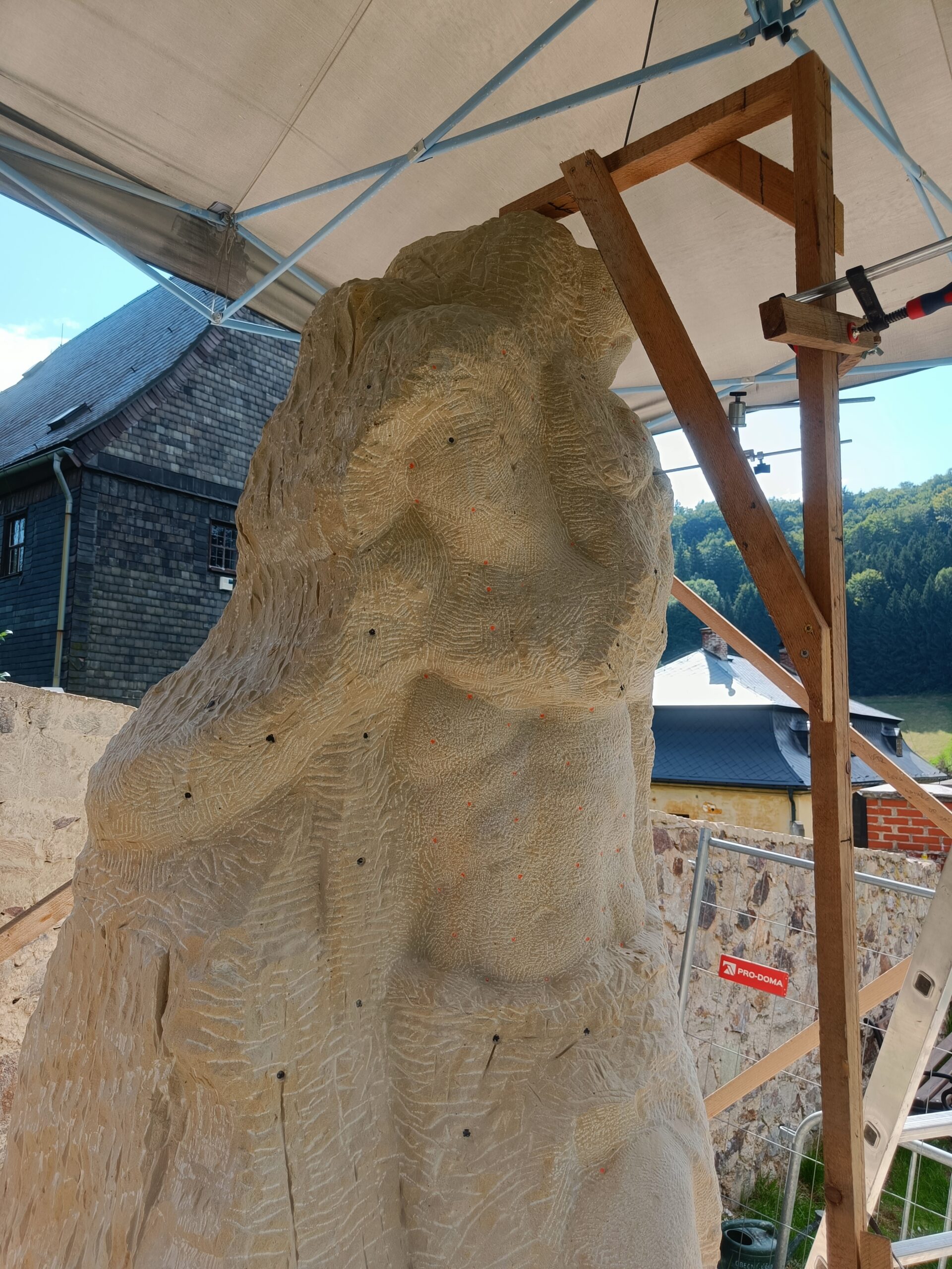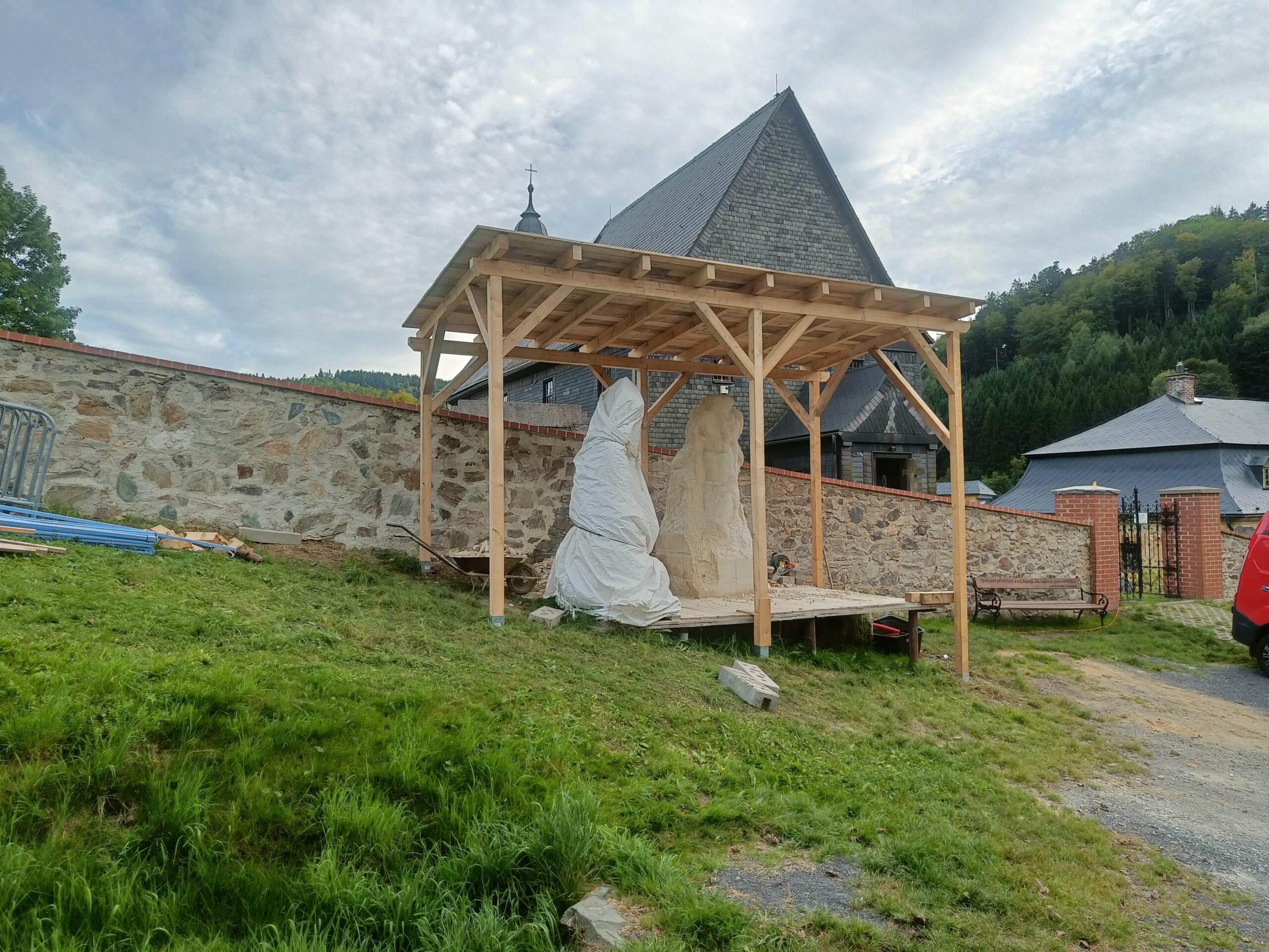 Věděli jsme, že toto místo nebude jednoduché pro provádění prací ani pro instalaci 6,5 tuny vážícího kamenného bloku ale šli jsme do toho. Současně jsme se také domluvili, že práce budou probíhat rovnou na místě, abychom snížili náklady a rizika spojená s převozem hotové sochy.